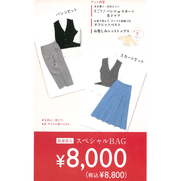 팬츠나 스커트에서 선택할 수 있는 4점 세트의 복봉투가 무려【¥8,000(세금 포함 ¥8,800)】
